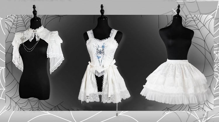 This price includes a corset top, a skirt, a shrug and a spider brooch.