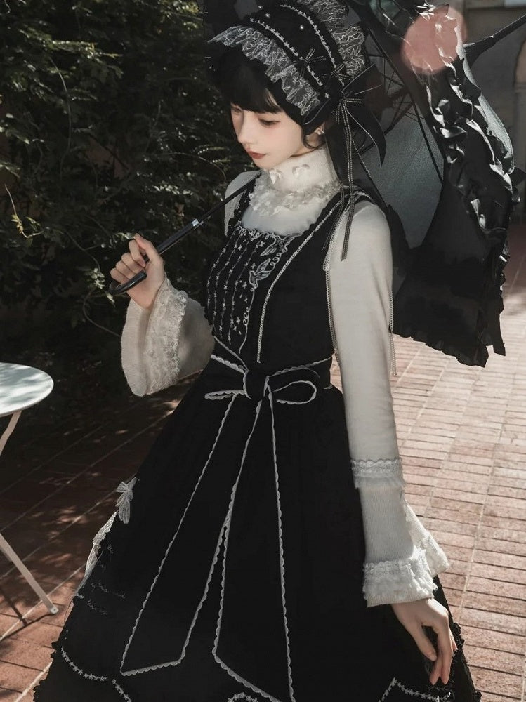 Crafted for those who adore the delicate charm of Lolita fashion, this piece features a sophisticated high neckline that exudes elegance. The top is adorned with charming bow details and intricate lace accents, adding a touch of whimsy. Perfect for layering or wearing on its own, this knit top effortlessly combines comfort with timeless style.
