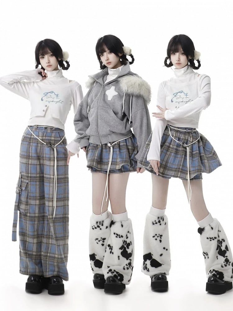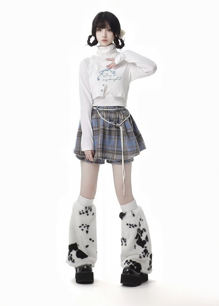 Embrace a harmonious blend of sophistication and playful charm with this stylish ensemble. The white top offers a classic and refined silhouette, perfect for any occasion that calls for a touch of elegance. Paired with a top, this outfit effortlessly merges comfort with a whimsical flair, making it an ideal choice for those who appreciate the subtle nuances of kawaii fashion. Whether you're dressing up for a casual day out or looking to infuse your wardrobe with a dash of youthful spirit, this combination promises to deliver both style and versatility.