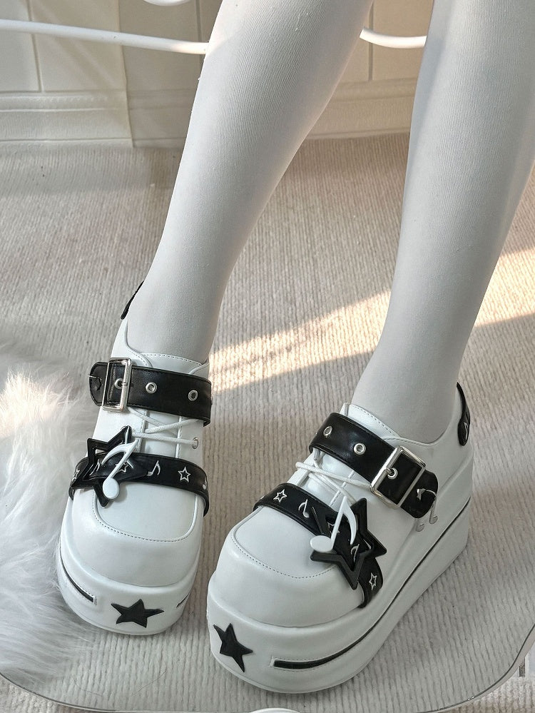 Step into a world of whimsical charm with our Starry Night Platform Shoes. These enchanting shoes feature a playful round-toe design, perfect for adding a touch of cuteness to any outfit. The standout feature is the delightful star embellishments that gracefully adorn the upper, capturing the essence of a dreamy night sky. With a sturdy platform sole, these shoes not only elevate your style but also provide comfort and support for all-day wear. Whether you're dressing up for a special occasion or adding a dash of kawaii to your everyday look, these shoes are sure to make you shine.