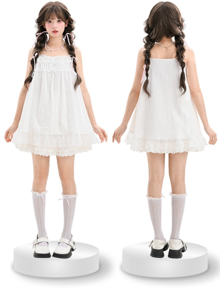 Elevate your wardrobe with this enchanting White Lace Trim Bowknot Camisole Top. Perfectly blending the delicate charm of lolita and the playful essence of kawaii fashion, this top features intricate lace trim detailing that exudes elegance. The dainty bowknot accent at the front adds a touch of whimsy, making it an ideal piece for those who adore feminine and youthful styles. Crafted from soft, breathable fabric, this camisole offers both comfort and style, making it perfect for layering or wearing on its own during warmer days. Pair it with a high-waisted skirt or pastel shorts to complete your dreamy ensemble.