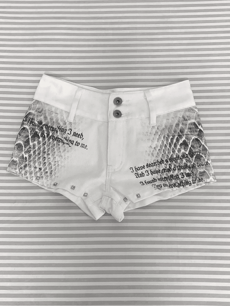 Add a touch of wild sophistication to your wardrobe with these White Low-Rise Snake Print Mini Shorts. Crafted for the bold and fashion-forward, these shorts feature an eye-catching snake print that exudes a fierce and trendy vibe. The low-rise design accentuates your silhouette, making them perfect for pairing with crop tops or tucked-in blouses.