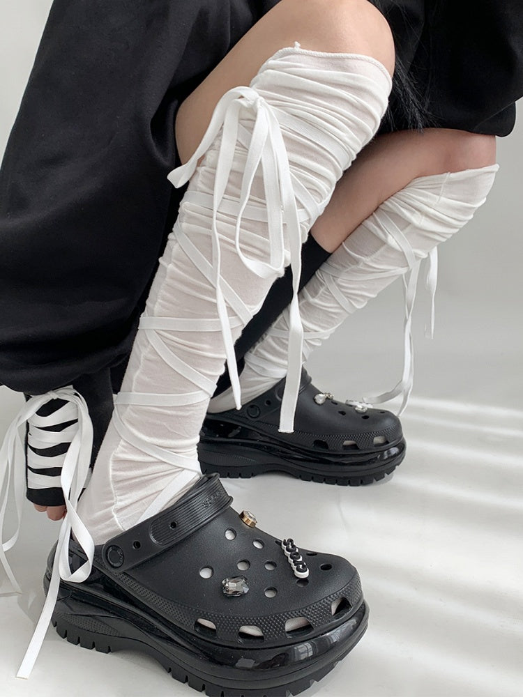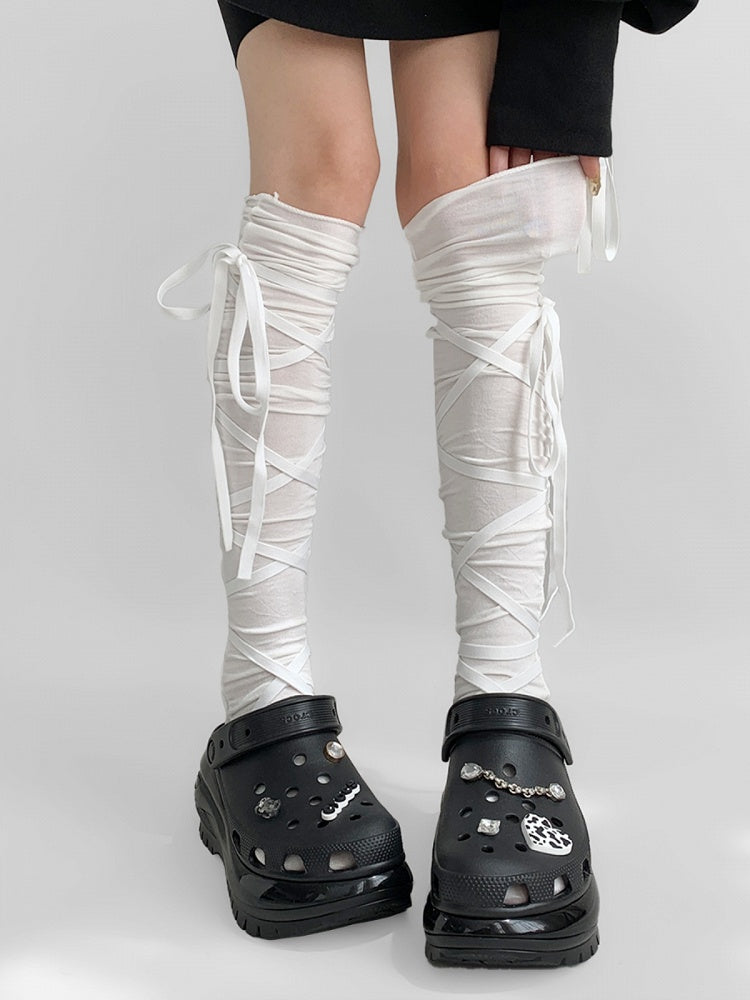 Elevate your kawaii-inspired look with these white self-tie straps loose stockings. Made from high-quality, stretchy fabric, these stockings feature delicate self-tie straps that add a touch of Lolita charm to your outfit. The loose fit provides comfort and flexibility, making them perfect for pairing with a variety of skirts or dresses.
