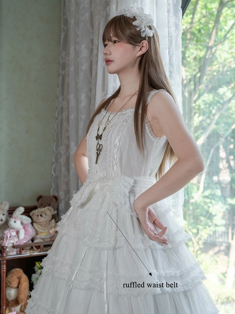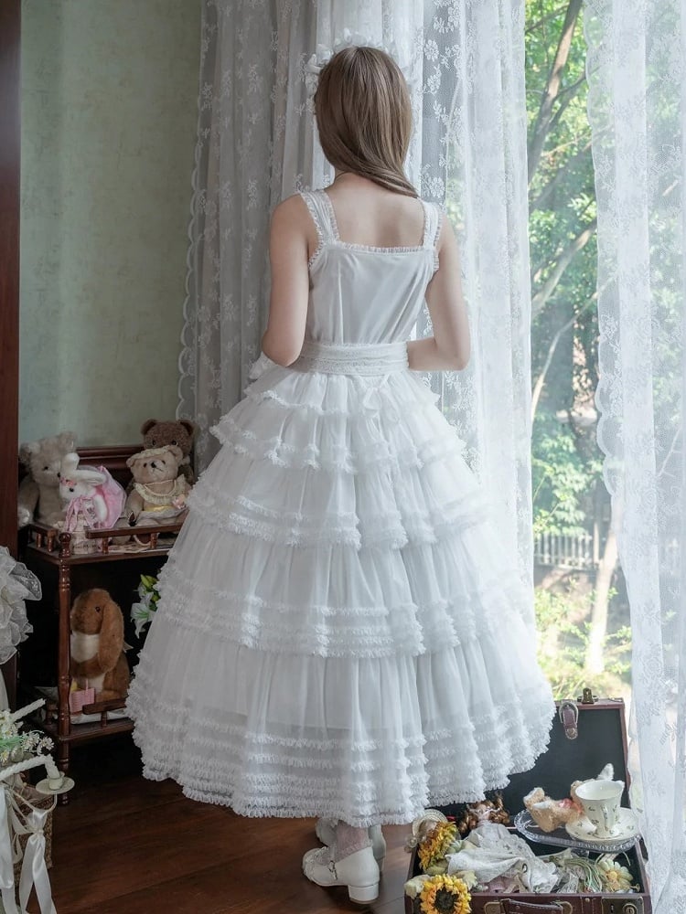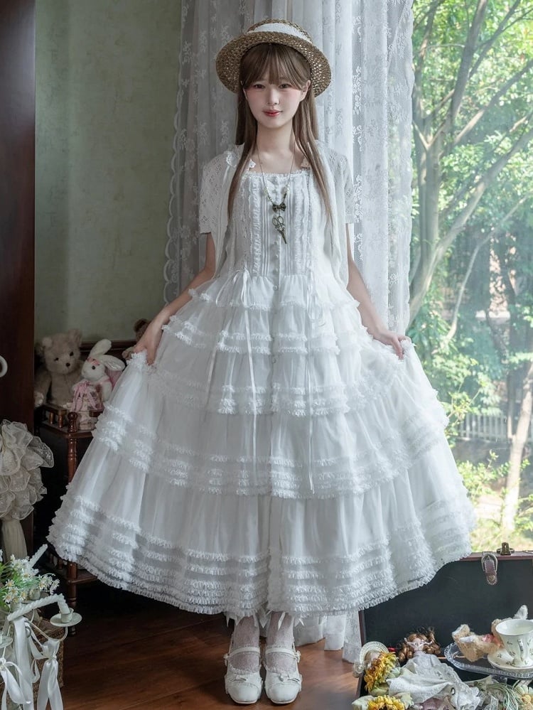 This enchanting Lolita JSK dress features a classic square neckline and exquisite tiered ruffles, embodying elegance and sophistication. Crafted with attention to detail, the dress offers a flattering silhouette that captures the essence of Lolita fashion. This dress combines timeless style with modern style, making it the perfect choice for tea parties or any elegant occasion.