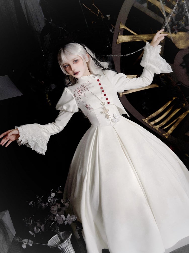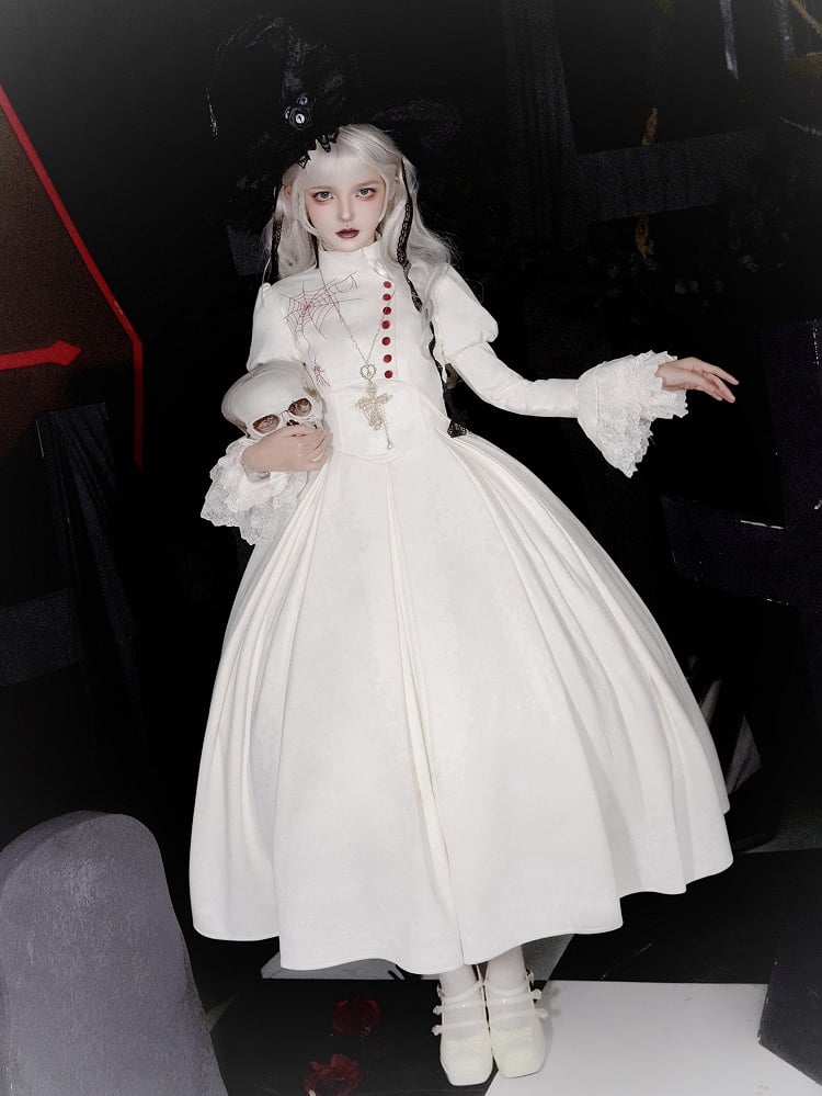 This enchanting piece features a delicately structured under bust design, enhanced with soft boning to accentuate your silhouette gracefully. The V-shaped waistline adds a touch of refinement, while the back is thoughtfully crafted with elastic and lace-up detailing for a customizable fit. A discreet side zipper ensures ease of wear. Ideal for those seeking a unique fusion of gothic and shiro lolita aesthetics, it's a timeless addition to any wardrobe.