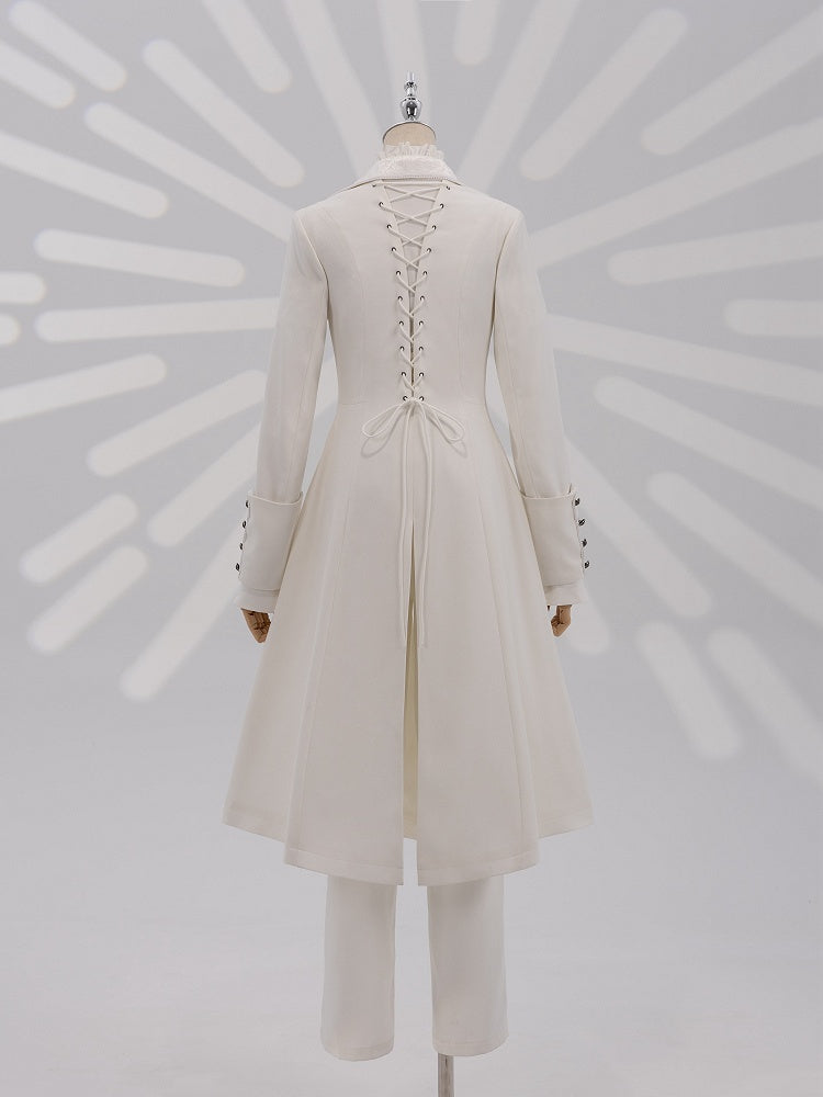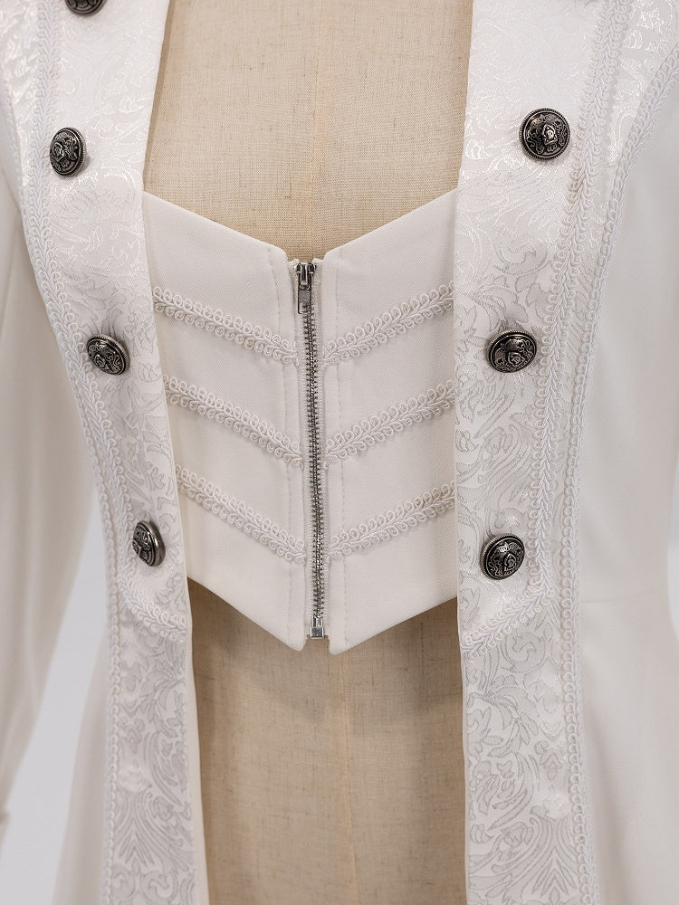 The blazer features a sophisticated jacquard placket and a sleek zip closure, offering a modern twist on traditional ouji fashion. Its jacquard blazer collar adds a touch of refinement, while the lace-up strap detail and triangle cutout back create an eye-catching silhouette that exudes confidence and style. Ideal for both formal occasions and avant-garde streetwear, this coat is a versatile addition to any fashion-forward collection.