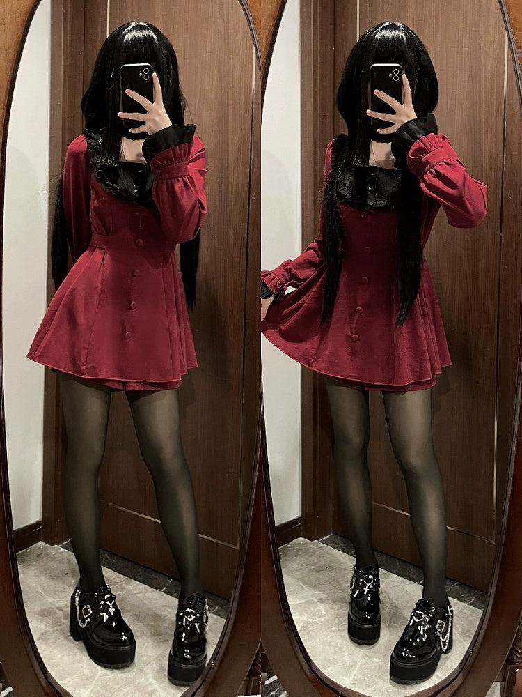 Introducing our scalloped eyelet trim neckline dress, a delightful combination of Lolita charm and Kawaii cuteness. This enchanting dress features a whimsical butterfly bow adornment at the neckline, exuding a sweet and innocent vibe. The chest is adorned with accordion pleats and ruffle trim, adding a touch of elegance to the overall design. The contrasting colors on the cuffs create a visually striking effect, adding depth and dimension to the garment. Additionally, this dress comes with a matching pair of shorts, providing both style and comfort in one complete ensemble. Embrace your inner Lolita and Kawaii fashion with this enchanting dress set.
