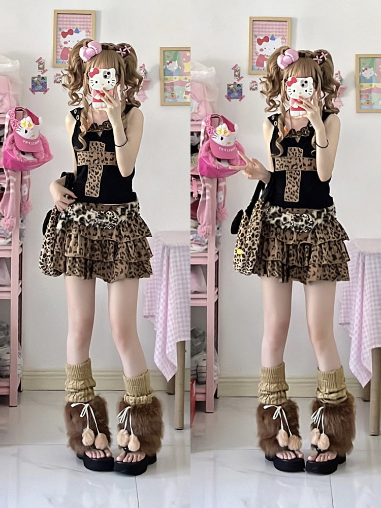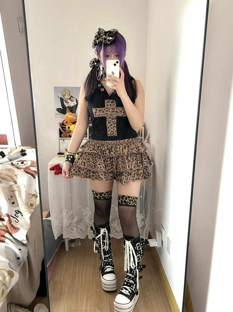 Step into a world of edgy fashion with our hooded tank top. This unique piece features a V-neck design that accentuates your neckline, adding a touch of allure to your ensemble. The standout detail is the striking cross patch adorned with a bold leopard print, making a fierce statement. Ideal for those who love to blend gothic elements with a hint of wild style, this top is a must-have addition to your wardrobe.