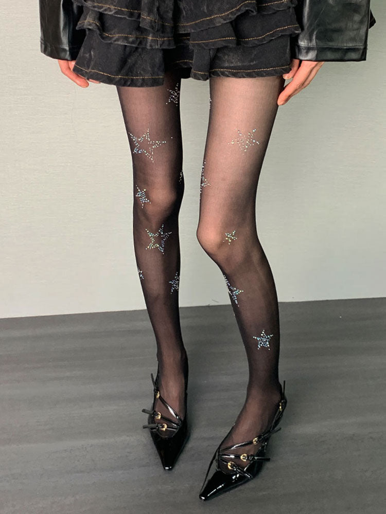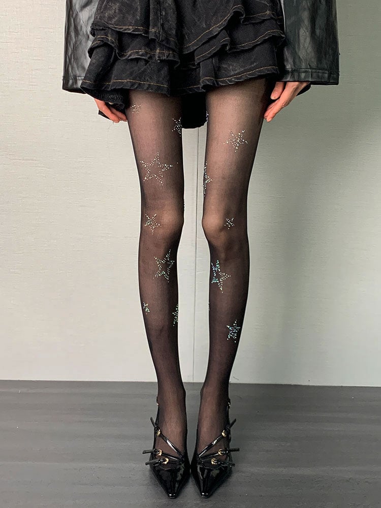 Elevate your outfit with these stunning rhinestone star-patterned tights. Designed to be both simple and elegant, these tights add a touch of sparkle and sophistication to any look. The intricate star designs made from shimmering rhinestones ensure that you stand out while maintaining a refined aesthetic. Perfect for both casual and formal occasions, these tights offer a unique blend of minimalism and stylish flair. Make your legs the star of the show!