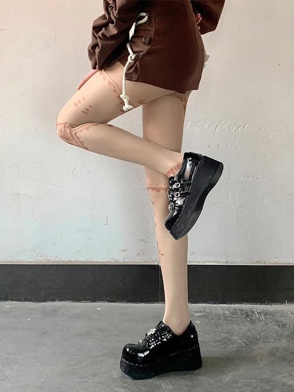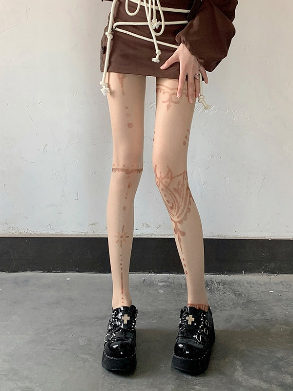 Introducing our Y2K Nude Tattoo Tights: a daring blend of edgy fashion and timeless allure. These tights feature an asymmetrical design that adds a unique twist to your outfit, while the intricate print design mimics the look of a chic tattoo, giving your legs an artistic edge. The see-through material offers a touch of sensuality, perfect for those who want to make a bold statement.