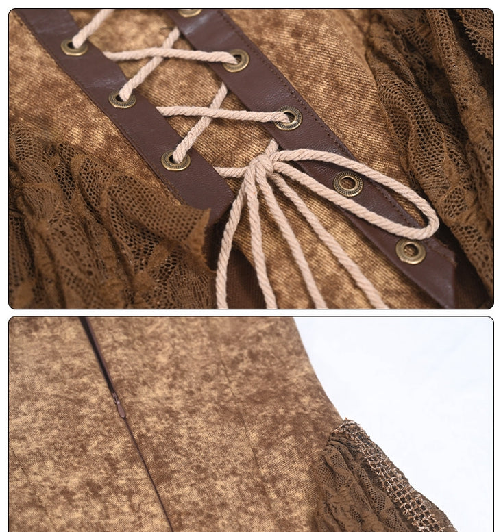 Elevate your Y2K Retro Vintage look with this Asymmetrical Lace-Up Strapless Bodice Top in Sand Brown. This top features a unique asymmetrical design and a lace-up front, adding an edgy, wasteland-inspired touch to your ensemble.