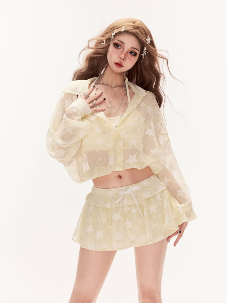 Embrace the sunny days with this adorable Yellow Star Print Sun Protection Shirt. Designed with a playful star pattern, this shirt not only adds a touch of whimsy to your outfit but also provides essential UV protection. The lightweight, breathable fabric ensures comfort throughout the day, while the vibrant yellow hue brings a cheerful vibe to your summer wardrobe.
