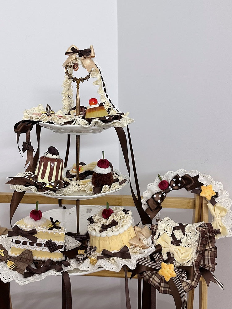 Crafted with meticulous attention to detail, this accessory features a playful triangle shape adorned with an elegant bow and vibrant cherry decorations. Perfect for adding a touch of sweetness to any outfit, this mini hat is an ideal choice for Lolita fashion enthusiasts looking to express their unique style with a hint of confectionery-inspired flair.