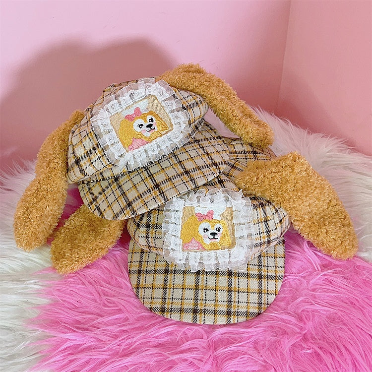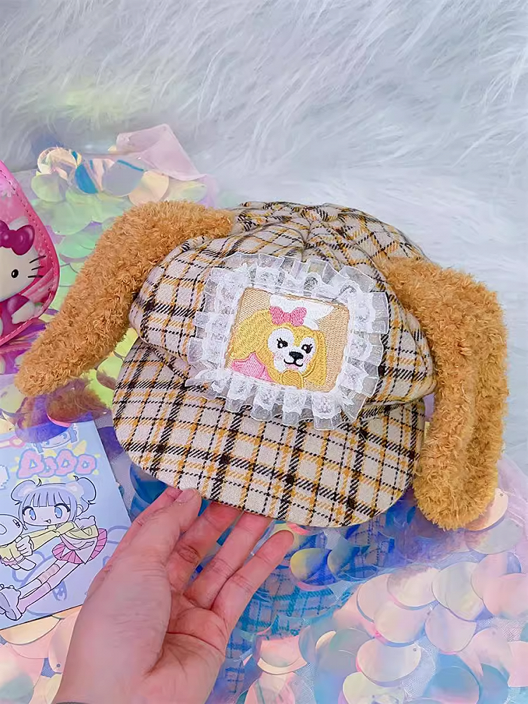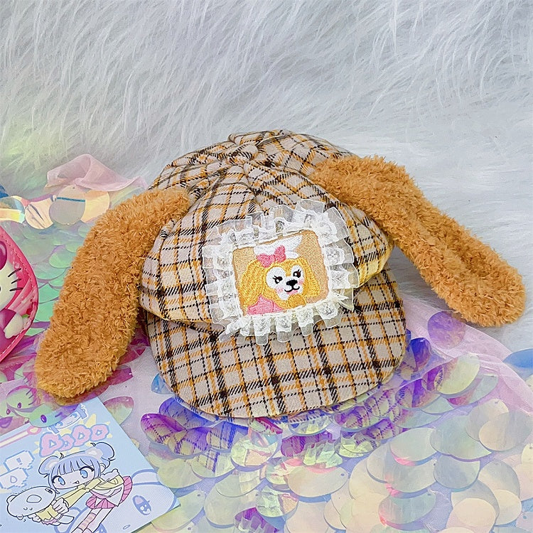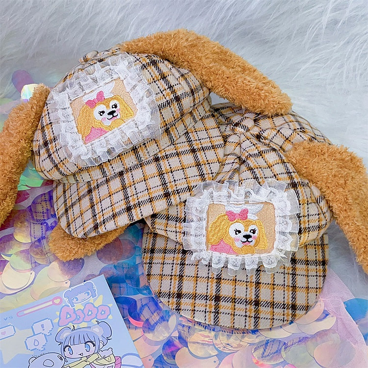 Embrace the adorable charm of this Yellow Plaid Puppy Ear Beret Hat, a delightful addition to any kawaii or lolita wardrobe. Crafted from soft, high-quality fabric, this beret features a classic plaid pattern in cheerful yellow tones, perfect for adding a pop of color to your ensemble. The standout feature is the pair of plush puppy ears, adding a playful and whimsical touch. Whether you're dressing up for a themed event or simply want to express your unique style, this beret is sure to capture hearts and turn heads. Adjustable for a comfortable fit, it's an ideal accessory for fashion enthusiasts who love to blend cute and quirky elements into their outfits.