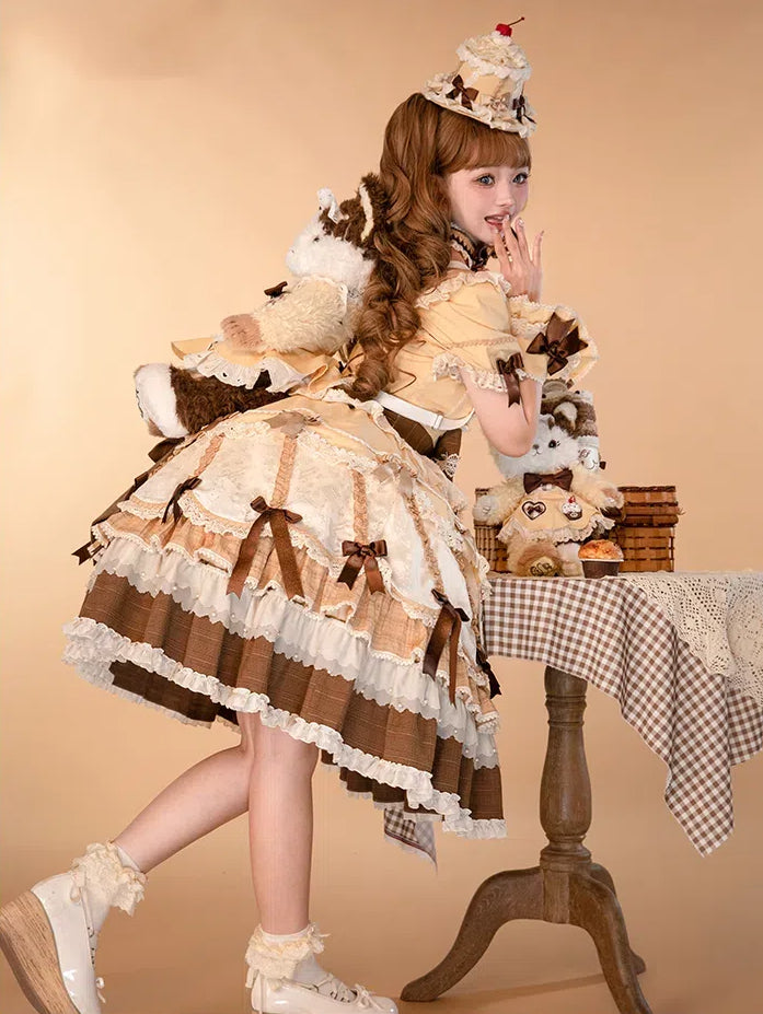 This charming piece features a flattering square neckline and delightful puff sleeves that exude a vintage charm. The dress is adorned with sweet bowknot details that add a touch of femininity, while the tiered hem creates a graceful silhouette. Designed for comfort and style, the back is enhanced with stretchy shirring and adjustable lace-up for a customized fit, and a discreet side zipper ensures easy wear.