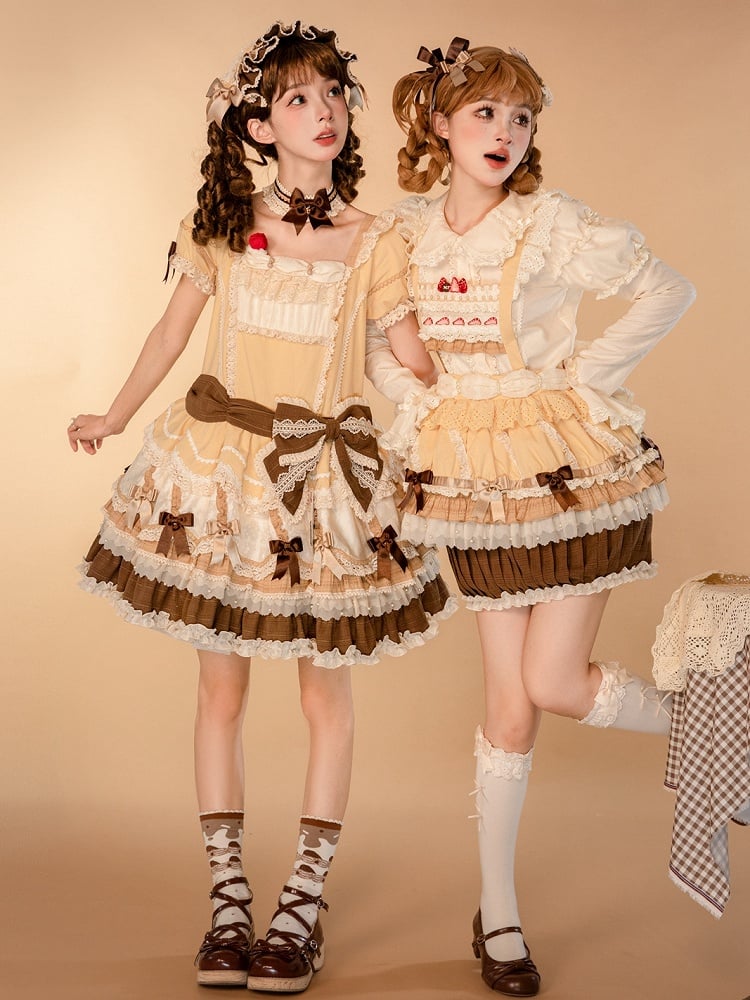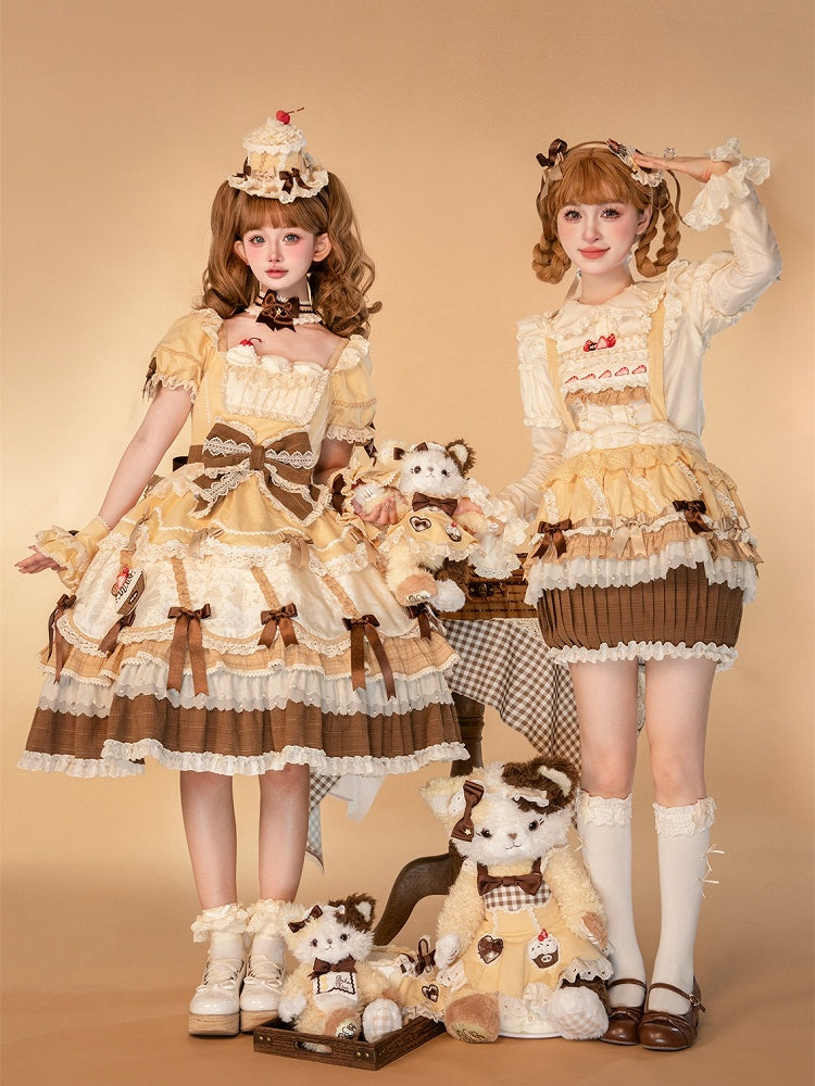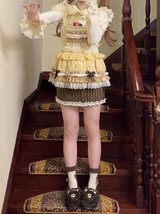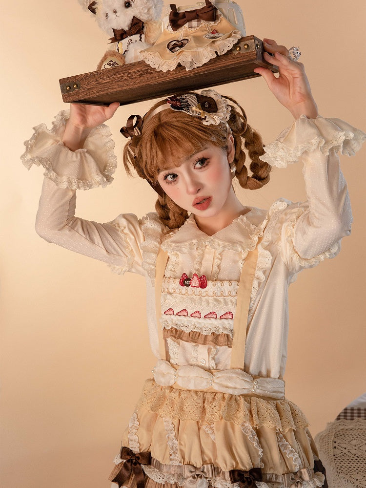 This enchanting piece captures the essence of sweet nostalgia with its delightful strawberry cake embroidery adorning the bodice, bringing a playful yet sophisticated touch to your wardrobe. The pleated cupcake hem adds a voluminous flair, perfect for twirling and making a statement at any gathering. Designed with comfort in mind, the skirt features an elasticized back waist, ensuring a snug yet flexible fit.
